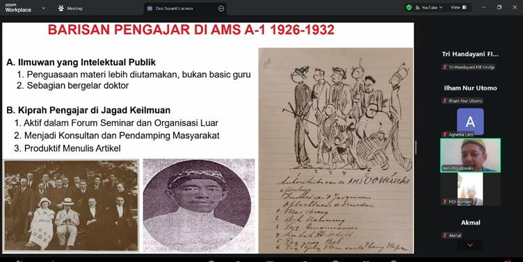 Tidak hanya menyampaikan materi tentang pergerakan AMS sebagai lembaga pendidikan masa kolonial Belanda, Dr. Heri Priyatmoko, M.A. juga menyampaikan peluang-peluang riset yang terbuka untuk diteliti oleh peserta Kuliah Dosen Tamu yang tertarik meneliti tokoh-tokoh besar yang lahir dari pendidikan di AMS.