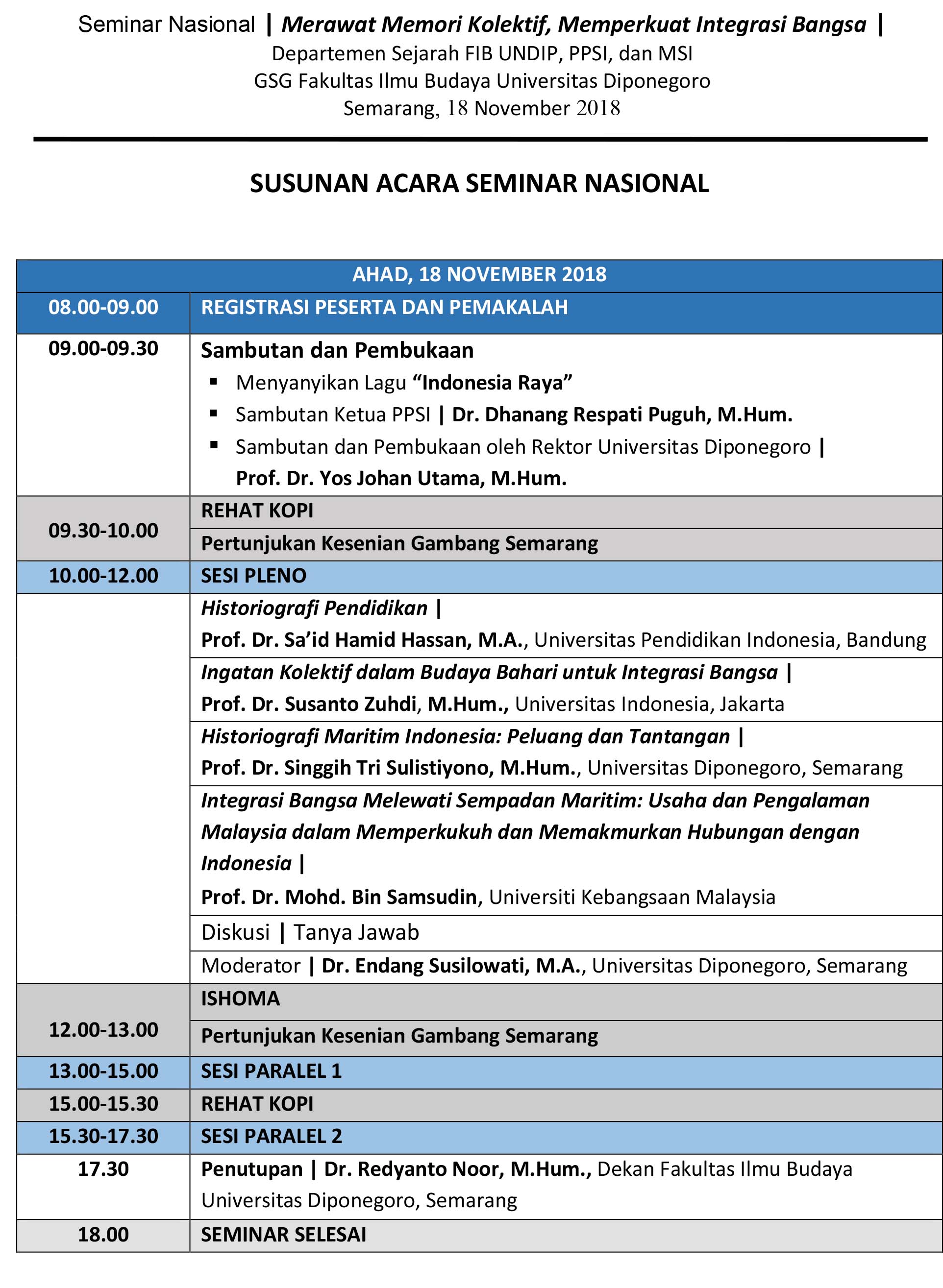 Informasi mengenai jadwal sesi paralel akan diumumkan mendatang di laman ini.